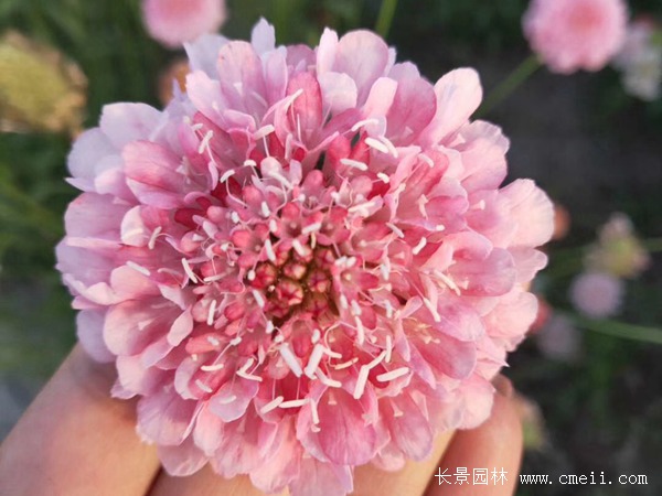 紫盆花是一種一年生的草本植物,春季種植等到6-7月份開花,紫盆花它的花朵是柱狀花序,大小在4-5公分顏色很多,有紅、粉、紫、白等多種顏色,是一種常見的園林綠化觀賞植物,可在花園、公園、花壇等處種植,也可以作盆栽或者是切花使用。